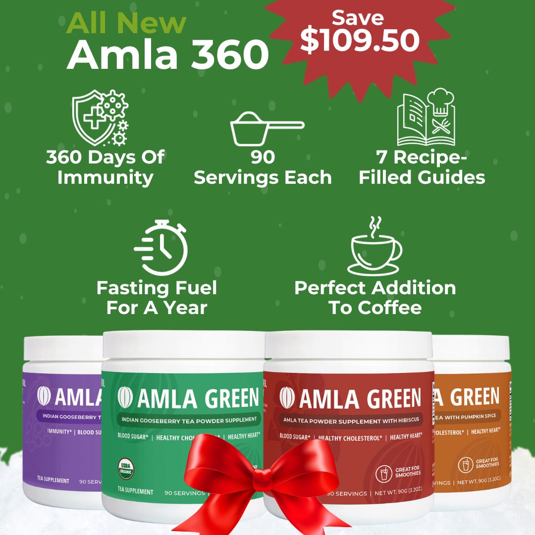 [{"id":33516519523,"handle":"all","updated_at":"2025-09-30T07:02:26-04:00","published_at":"2018-05-07T05:04:41-04:00","sort_order":"manual","template_suffix":"shop-now","published_scope":"web","title":"All","body_html":"\u003cdiv class=\"collection-page-content\"\u003e\n\u003ch1\u003eIndian Gooseberry Powder Blends\u003c\/h1\u003e\n\u003cp\u003eOur latest Amla Green product line-up, available in both caffeine and caffeine free versions, combines organic ingredients with oolong green tea to provide an optimal superfood experience.\u003c\/p\u003e\n\u003cp\u003eTake advantage of our monthly subscription offering and purchase a container today. To review the many health benefits of Amla Green antioxidant rich powder, or get more information please visit our \u003ca href=\"\/pages\/faq\"\u003eFAQ page\u003c\/a\u003e.\u003c\/p\u003e\n\u003c\/div\u003e"},{"id":265381085283,"handle":"all-products","updated_at":"2025-09-30T07:02:26-04:00","published_at":"2022-06-14T18:13:03-04:00","sort_order":"manual","template_suffix":"","published_scope":"web","title":"All Products","body_html":""},{"id":427718082848,"handle":"bundles","title":"Bundle \u0026 Save","updated_at":"2025-09-30T07:02:26-04:00","body_html":"\u003cmeta charset=\"utf-8\"\u003e\n\u003cp data-mce-fragment=\"1\"\u003eSave over $100 on our *new* Amla 360 Bundle, or look for your favorite combination of Amla Green and save big! Boost your immunity with our 100% organic, antioxidant-rich amla green powder! Your new daily healthy habit is here.\u003c\/p\u003e","published_at":"2022-11-16T10:49:17-05:00","sort_order":"manual","template_suffix":"","disjunctive":false,"rules":[{"column":"title","relation":"not_contains","condition":"stock"}],"published_scope":"web","image":{"created_at":"2025-05-12T14:21:04-04:00","alt":null,"width":2272,"height":2360,"src":"\/\/amlagreen.com\/cdn\/shop\/collections\/Bundle_and_Save.png?v=1747074064"}},{"id":499575423264,"handle":"bundle-save","updated_at":"2025-09-30T07:02:26-04:00","published_at":"2025-05-21T17:48:13-04:00","sort_order":"best-selling","template_suffix":"bundle-save","published_scope":"web","title":"Bundle \u0026 Save","body_html":"","image":{"created_at":"2025-05-21T17:48:12-04:00","alt":null,"width":500,"height":500,"src":"\/\/amlagreen.com\/cdn\/shop\/collections\/Amla_Green_2.jpg?v=1751062014"}}]